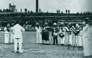 ハーフタイムに、イギリス艦隊所属の音楽隊がでてきた。ちょうどバルセロナ港に寄港していたので、この親善試合に協力を申し出てくれていたのだ。シーンとするグランドに演奏が始まった。マルチャ・レアール(スペイン国歌)が流れる。すると観衆の一部から湧き出たブーイングが、突如としてグランド全体に広がっていった。その反応に驚いた貴賓席の人々は、国歌が流れているのに立ち上がる事さえ忘れてしまっていた。だが、この反応に最も驚いたのは演奏している楽団であった。「曲を間違えたのだろうか?」と思ったのかどうかはわからないが、ブーイングが更に強くなる中、演奏曲をイギリス国歌に変えたのだ。するとどうだろう、ブーイングが止み、笑いと共に大きな拍手が起き始めた。 「FCバルセロナの6カ月間にわたる活動停止とともに、ラス・コーツスの6カ月の閉鎖を命じる」。軍部が蜂起し権力を握り、政治を動かしていた時代の出来事である。時の権力者にとっては、重大な「反乱行為」であった。カタルーニャ地方軍のミランス・デル・ボッシュ将軍は、FCバルセロナに対する制裁措置を発表する。「反乱行為」が発生してから10日後のことであった。 クラブ会長のジョアン・ガンペルはカタルーニャからの一時追放を余儀なくされた。 |