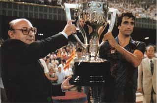 この11年間、バルサがリーグ優勝を飾れなかった理由はいろいろあるだろう。バルセロナの生活の慣れてきたと思うと、新たな外国人選手の獲得で放出された多くの外国人選手。監督と選手による数々の衝突。多くのスキャンダルな審判の疑惑の判定。キニーの誘拐事件。シュステルやマラドーナの悪いタイミングでの負傷。毎年シーズンの始めには常に「優勝候補」として取り上げられてきたものの、その度に何か問題が起きてしまうバルサであった。 ベナブレスが成功した一つの原因として、クラブ内はおろか外部との人間関係でもいっさいの問題を、もちろんスキャンダルも起こさなかったことだろう。常に主役となることを避け、クラブや選手に、今までバルサというクラブに欠けていた落ち着きを取り戻した。例えばマラドーナがバルサに在籍した時代を思い出してみよう。マラドーナがグランド外で起こすスキャンダルが、毎日のようにメディアに登場していた。メディアに流れるバルサ関連のニュースは、スポーツ的なものではなくそれ以外のものとなっていた。メディアを通しての話しとはいえ、これらのことが選手間に良い影響を与えるわけがなかった。 この84−85シーズンには優勝したこと以外にも、バルサの歴史において重要な意味を持つことが起きている。それは当時としては珍しいクラブの「記念博物館」の完成であった。 1984年9月24日、バルサ関係者の長い間の夢であった「バルサ記念博物館」が開設される。カンプノウの貴賓席の裏にあるスペースを利用したこの博物館の中には、これまでのバルサのすべての歴史が詰められている。それまで獲得した優勝カップを始め、歴史的選手の記念品や時代ごとのユニフォームやシューズなどが展示されていた。カタルーニャ州議長のジョルディ・プジョーも参加しておこなわれたセレモニーは、ヨーロッパにおけるビッグクラブ関係者の注目の的となったのは言うまでもない。 そしてこのシーズンが終わった1985年6月30日には、バルサソシオの数がついに10万8千人となる。 |