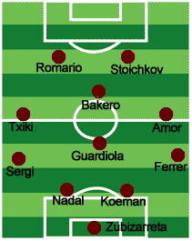 2年前の1992年5月、ウエンブリーでの決勝戦を前にしたクラブ関係者は、多くのバルセロニスタに対して“慎重さ”を何回にもわたって訴える声明をおこなっている。彼らにはまだ“セビージャの悲劇”が脳裏から離れないためだった。あの試合前には、異常なまでの楽観主義的傾向がクラブを包んでいた。ほぼ地元同然といえるセビージャでおこなわれる決勝戦だからゆえに、自然と楽観視してしまった。だがそのような“楽観的”な雰囲気の中での試合で敗北することは、敗戦時のショックが2倍にも3倍にもなることを学んだクラブ関係者だ。だからこそウエンブリーの試合前にはしつこいまでに“慎重さ”を要求した。 だが、その“慎重さ”を要求した同じクラブ関係者だというのに、このアテネでは彼ら自身に“慎重さ”が欠けることになる。ウエンブリーでの勝利が、わずか2年前の勝利が、彼らに“慎重さ”を失わせてしまった。それは試合前日だというのにクラブ理事会メンバーやクライフをはじめとするコーチ陣が楽しそうにアクアポリスで写真を撮っているシーンにも見て取れた。多くのメディアが、カタルーニャメディアだけではなくほとんどのスペインメディアや世界中のメディアが“バルサ圧倒的優位”をうたっていたことと関係があるかも知れない。この異常なまでの楽観主義が生まれたのも理解できることではあった。それは、ここまでのバルサの成績をみればわかることだ。2月からのバルサはリーグ最終戦まで15試合を戦って13勝2分けという成績を残している。コパ・デ・ヨーロッパでも4試合戦って3勝1分け。つまり合計19試合を戦って16勝3分け、そして負け知らずという抜群の成績を残していたバルサだった。 それでも試合は戦ってみなければわからない。一つの試合が独自の歴史を作るように、90分の戦いでは何が起きても不思議ではない。まして相手は下降線状態にあるとはいうものの何と言っても伝統あるミランであり、しかもコパ・デ・ヨーロッパの決勝戦なのだ。 1994年5月18日、アテネのオリンピック・スタディアムにはほぼ同じ数のバルセロニスタとミラニスタが集まっていた。 この試合にはミランにとって重要な二人の選手がカード制裁で出場できない不運があった。カピタンのバレッシとコスタクルタは観客席からこの決勝戦を観戦することになる。ミランの監督ファービオ・カペーロが準備した11人、それはロッシ、タソッティ、パヌッチ、アルベルティーニ、ガリ、マルディーニ、ドナドーニ、デサイリー、ボバン、サビセビッチ、マッサーロ。それに対してクライフ・バルサの11人はスビサレッタ、クーマン、ナダール、フェレール、セルジ、ペップ、アモール、チキ、バケーロ、ロマリオ、ストイチコフという面々。